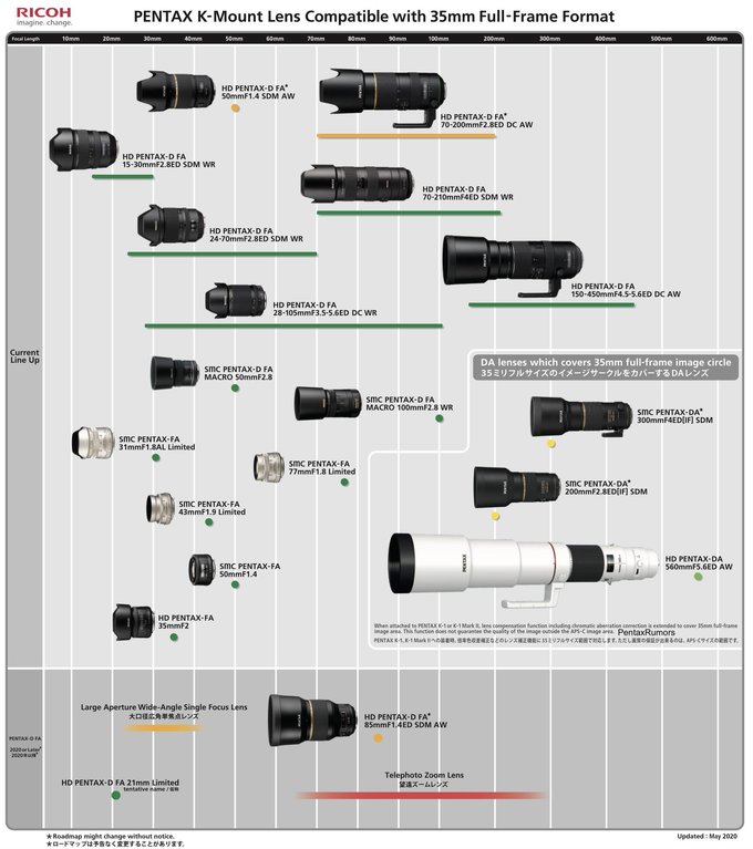 Przy okazji firma opublikowała także zaktualizowane diagramy z istniejącymi i planowanymi obiektywami na bagnet K.