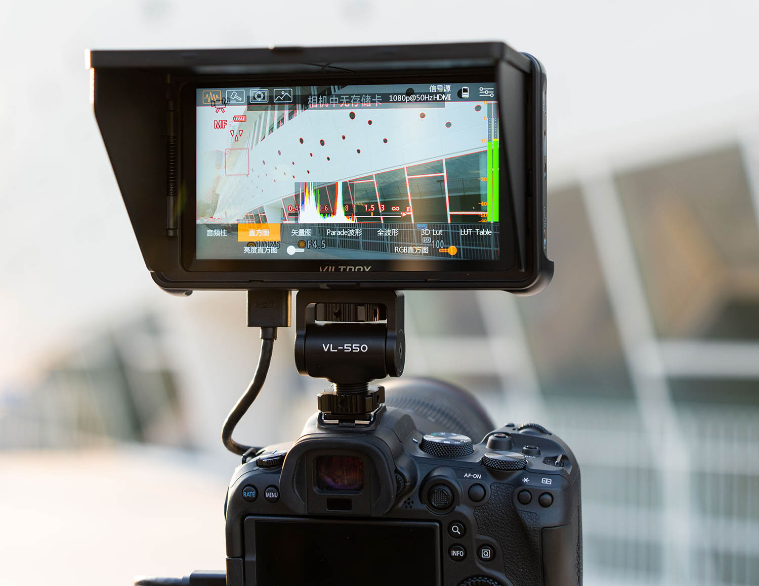 Viltrox DC-550 Pro to zaawansowany monitor do fotografii i filmowania, zaprojektowany z myślą o profesjonalnych użytkownikach. Wyposażony w 5,5-calowy ekran dotykowy o wysokiej rozdzielczości, umożliwia precyzyjne kadrowanie oraz monitorowanie obrazu w czasie rzeczywistym. Monitor posiada szeroki kąt widzenia 178° i jasność 1200 nitów, zapewnia wyraźny obraz nawet w jasnych warunkach otoczenia. Ponadto DC-550 PRO oferuje bogatą paletę funkcji takich jak histogram, focus peaking czy zagnieżdżone menu, które usprawnia proces pracy operatora.