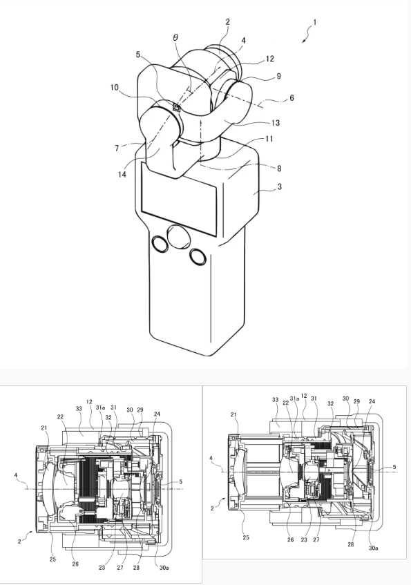 W kolejnym wniosku patentowym przygotowanym przez inżynierów firmy Canon opisano umieszczoną na gimbalu kieszonkową kamerę wideo.