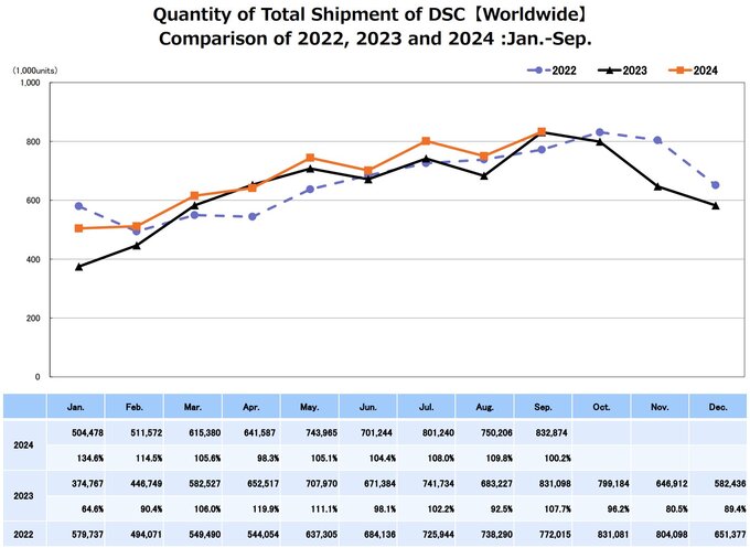 Analogiczny wzrost obserwujemy w przypadku urządzeń z wymienną optyką, których we wrześniu dostarczono 622 tys. sztuk, co jest najlepszym wynikiem odnotowanym w tym roku i drugim najlepszym od początku 2022 – większe dostawy odnotowano tylko we wrześniu 2023, kiedy to dostarczono 667.7 tys. korpusów.