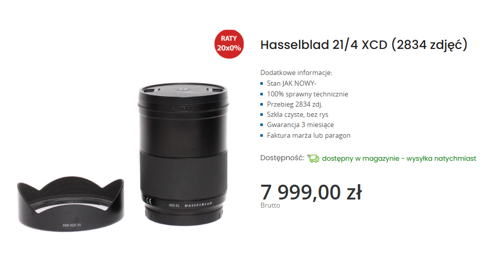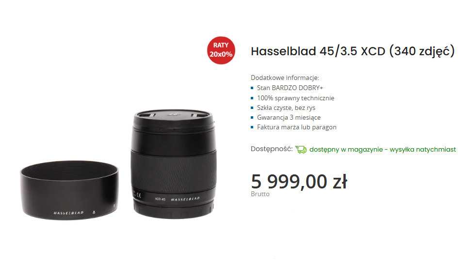 - Hasselblad 45/3.5 XCD (340 zdjęć) – 5 999 zł