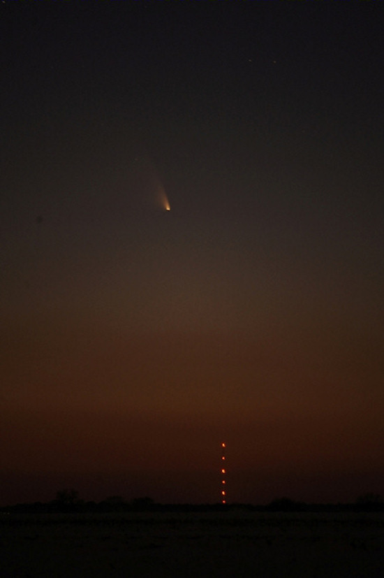 Wiosną tego roku widoczna była kometa Panstarrs. Zdjęcie wykonano ze zwykłego statywu aparatem Nikon D3 z obiektywem Nikkor 400/5.6 IF-ED, 1000 ISO, f/8, ekspozycja 8 sekund. |