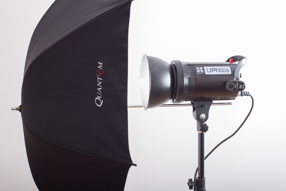 W zestawie Quantuum, którym się posługujemy, do naszej dyspozycji jest parasolka z białym środkiem. Jak wspomnieliśmy, dzięki temu uzyskujemy miękkie oświetlenie, gdyż światło rozprasza się w znacznym stopniu po całym pomieszczeniu. Ostateczny efekt zależeć będzie m.in. od charakterystyki owego pomieszczenia. Przy białych ścianach wiele światła będzie się od nich odbijać, przez co uzyskamy duże rozproszenie światła.