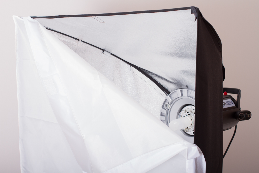 Kolejnym, równie popularnym modyfikatorem światła jak parasolka transparentna jest tzw. softboks. Specjalna konstrukcja pozwalająca rozproszyć światło składa się z kopuły o srebrzystym wnętrzu, która sama w sobie pełni rolę pokaźnych rozmiarów czaszy. Na kopułę ową nałożyć można biały materiał – podstawowy czynnik rozpraszający światło.