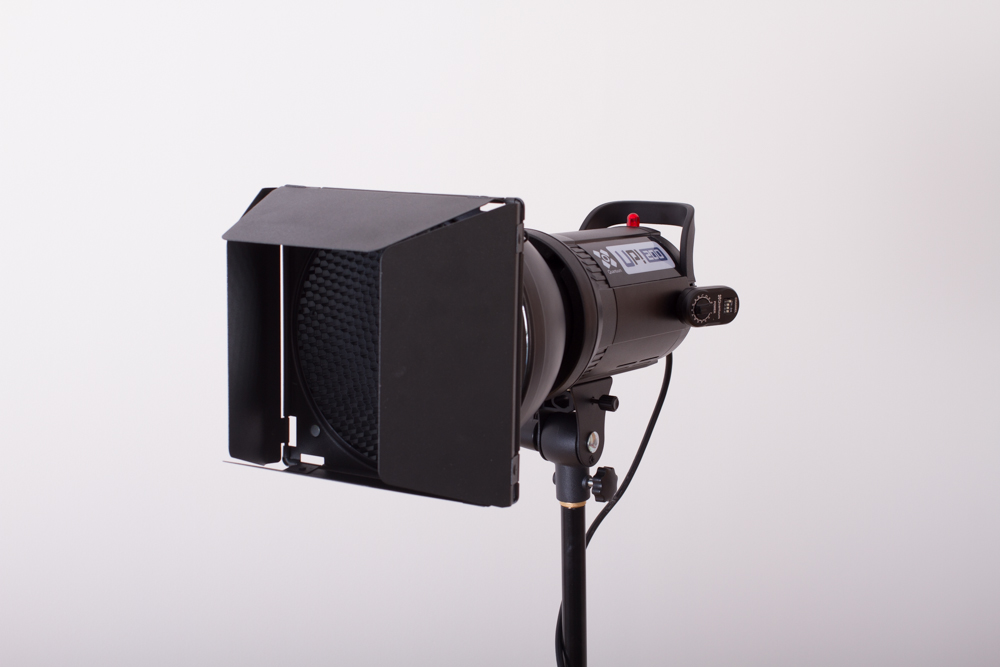 Błyskowe lampy studyjne w praktyce - teoria -  Błyskowe lampy studyjne w praktyce - teoriaLampa Quantuum Up! 200, pełna moc (odległość 1.8 m), plaster miodu oraz przymknięte wrota