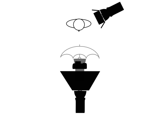 Schemat 2 – softboks nad i za aparatem oraz dodatkowo lampa z transparentną parasolką