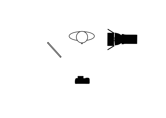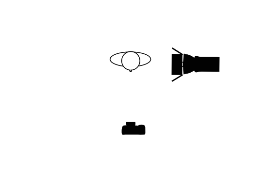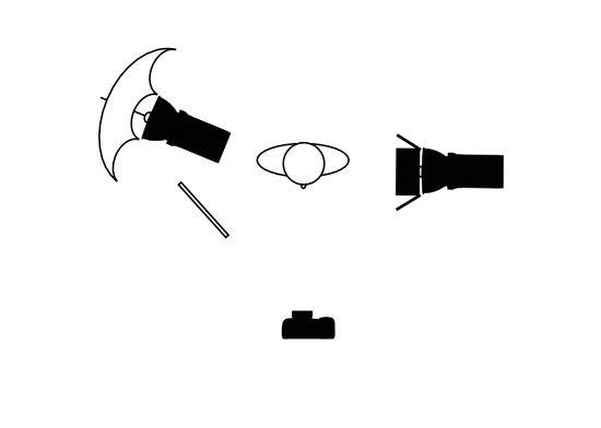 Schemat 6 – światło softboksu odbija srebrna blenda po przeciwnej stronie aparatu
