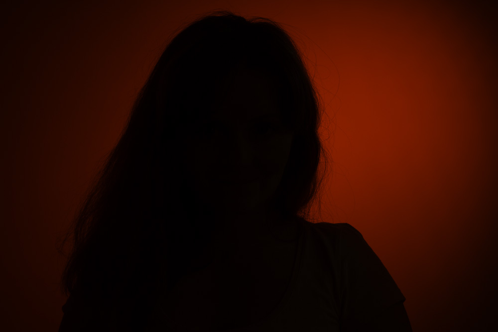 Zdjęcie prezentujące światło lampy z filtrem czerwonym, skierowanej na tło