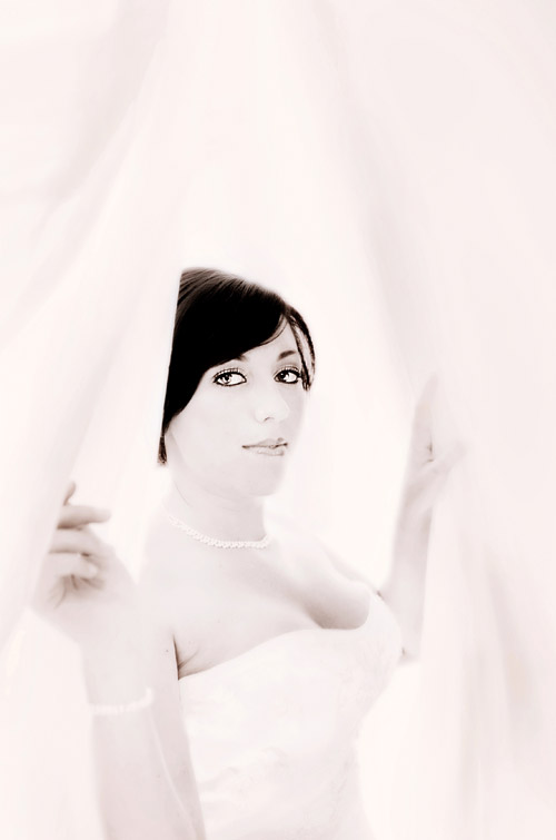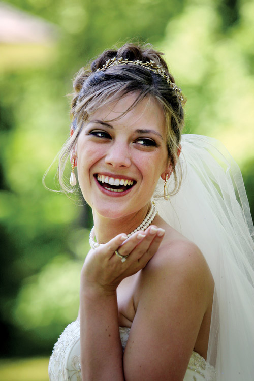 Zacznij uczciwie ćwiczyć całkowitą nieobecność — przy jednoczesnym tworzeniu dopracowanych, kreatywnych kompozycji, a efekty Cię zaskoczą. Na przykład, jeśli próbujesz zrobić portret panny młodej, która stoi tuż przed kościelną gazetką, sprawdź kadr pod innym kątem, aby tło było mniej dostrzegalne. Jeśli pracujesz w plenerze i widzisz w kadrze turystów lub znaki, nie akceptuj takich ujęć, tylko zmieniaj pozycję! Przemieszczaj się i miej oczy otwarte, aż znajdziesz punkt widzenia eliminujący wszystkie te rozproszenia. Przez cały czas zachowuj dystans wobec panny młodej, aby nie miała świadomości Twoich manewrów. Nigdy nie podchodź zbyt blisko. Unikaj wpływania na jej działania i sposób zachowania. Dąż do maksymalnej naturalności.