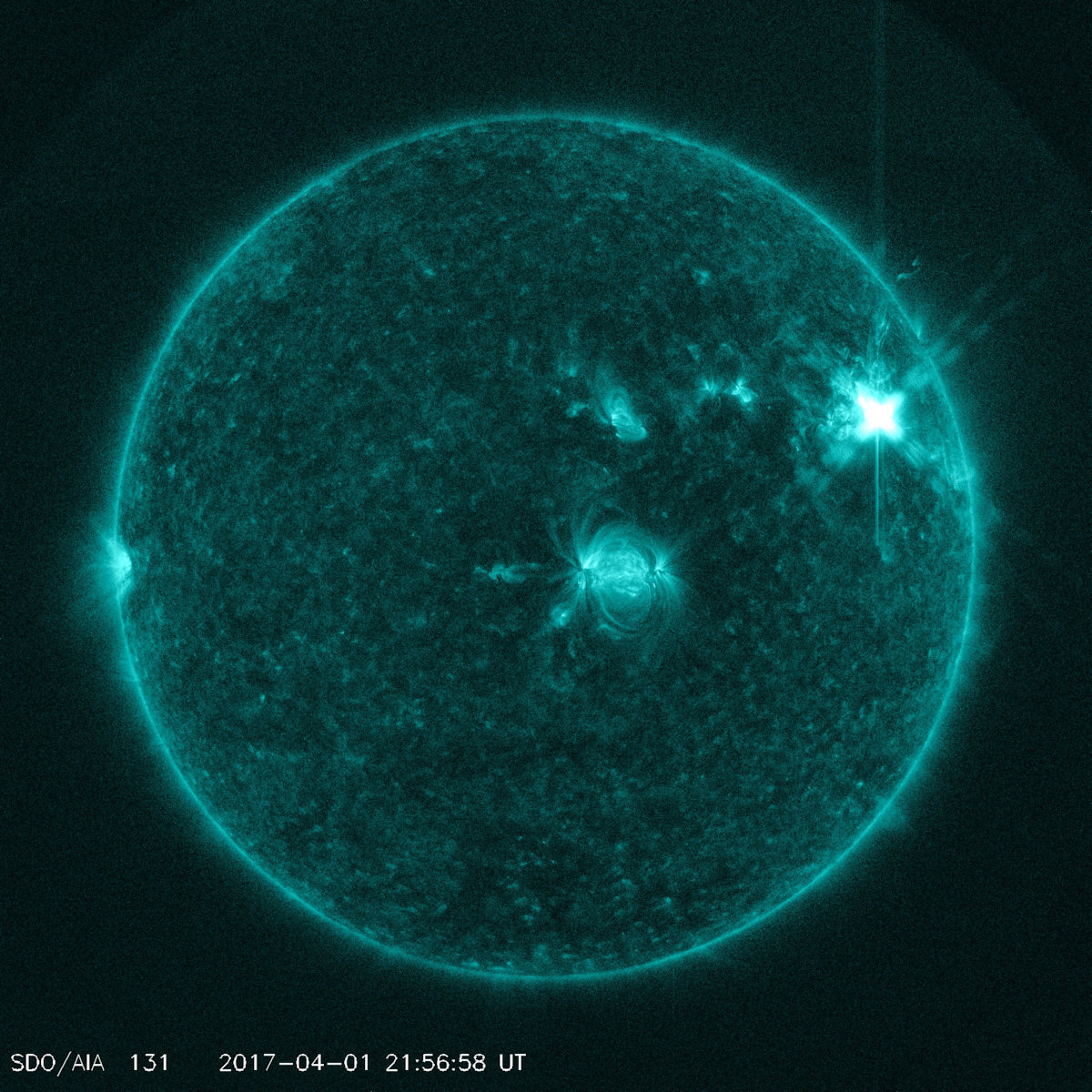 Rozbłysk klasy M5, który miał miejsce 1 kwietnia 2017 roku. Źródło: SDO/AIA |