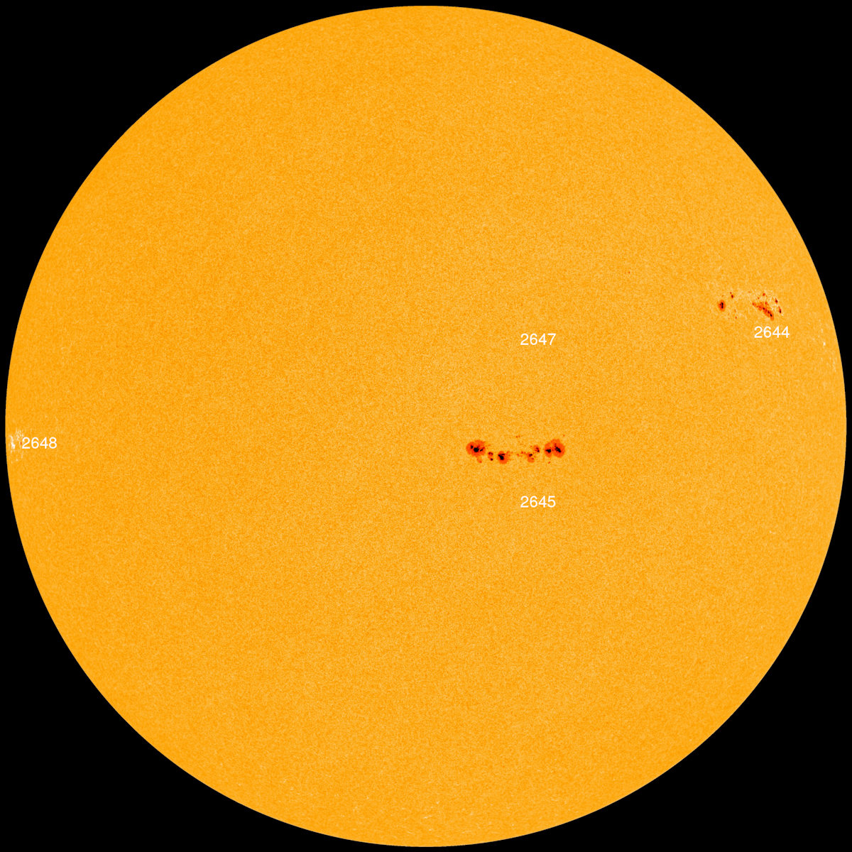 ![]() Rozbłysk powstał nad plamą 2644. Źródło: SDO/HMI |
