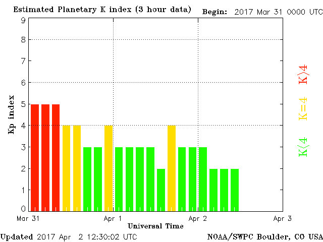 Aktualna wartość Kp jest podawana na Space Weather, a historyczne dane można śledzić na tej stronie